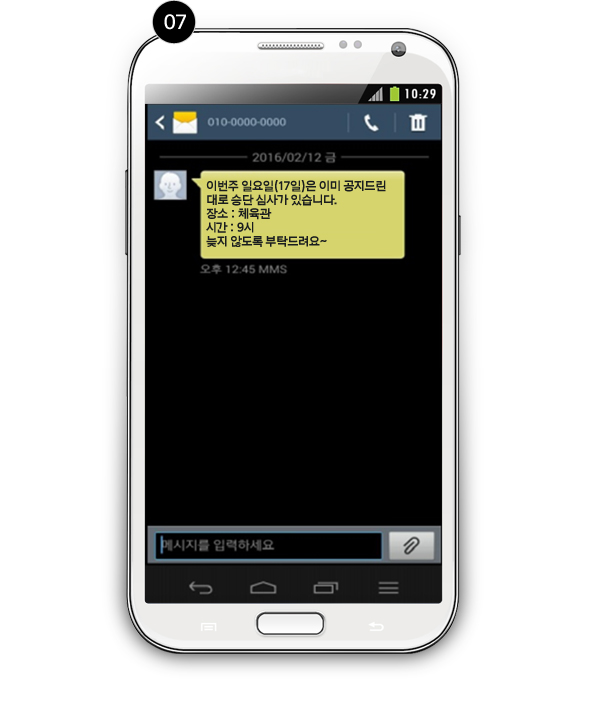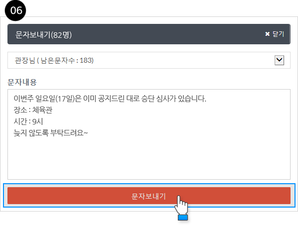 원생목록에서 터치로 간편하게 수신자 추가 후 그룹 문자 일괄 전송